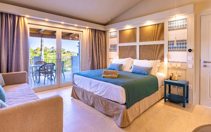 The Terrace Deluxe Sea View Plus Rooms are the ideal choice for families, accommodating up to 6 people. Combining two interconnecting sea view terrace rooms, they offer the perfect corner of tranquillity and comfort for those seeking a spacious and versatile area. Located on the first floor, these rooms enjoy natural brightness thanks to large windows overlooking a furnished terrace and boast a wonderful sea view, ideal for relaxing outdoor moments.